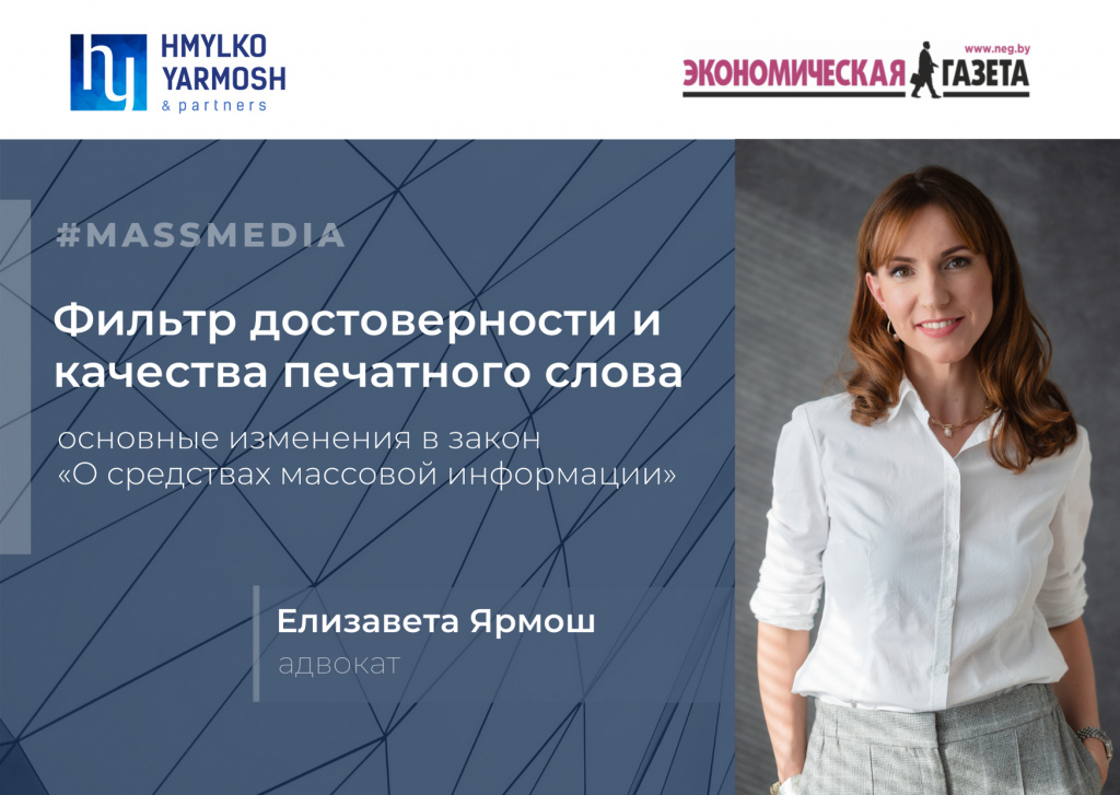 Партнер Адвокатского бюро «Хмылко, Ярмош и партнеры» Елизавета Ярмош совместно с Экономическая газета обсудили наиболее значимыми изменения в Законе о «Средствах массовой информации», вступившие в силу 26 июня 2021 года.