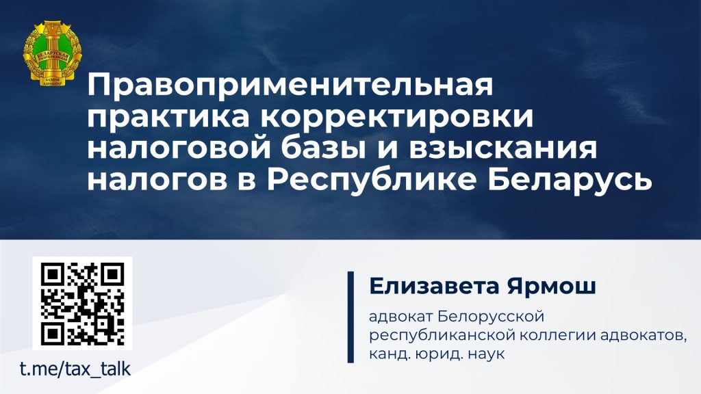 Адвокатом Елизаветой Ярмош 4 июня 2024 года для Белорусской республиканской коллегии адвокатов был проведен семинар на тему «Правоприменительная практика корректировки налоговой базы и взыскания налогов в Республике Беларусь».