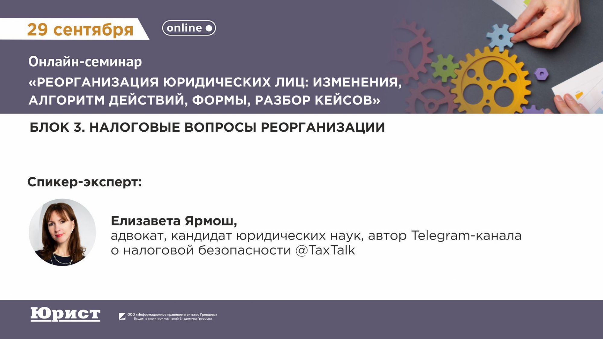 29 октября 2025 года прошло онлайн-мероприятие «Реорганизация юридических лиц: изменения, алгоритм действий, формы разбор кейсов».