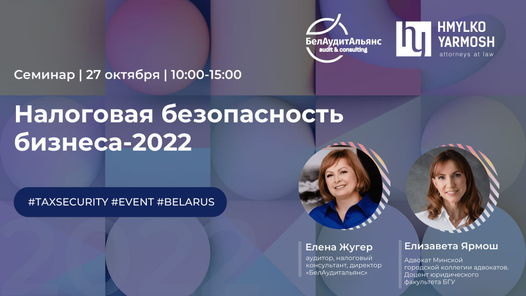 Адвокат Елизавета Ярмош совместно с Елена Жугер (директор аудиторской компании Белаудитальянс) расскажет последние подходы контролирующих органов, поделится изменениями законодательства и конечно, осветит самые последние кейсы налоговых проверок (включая успешные).